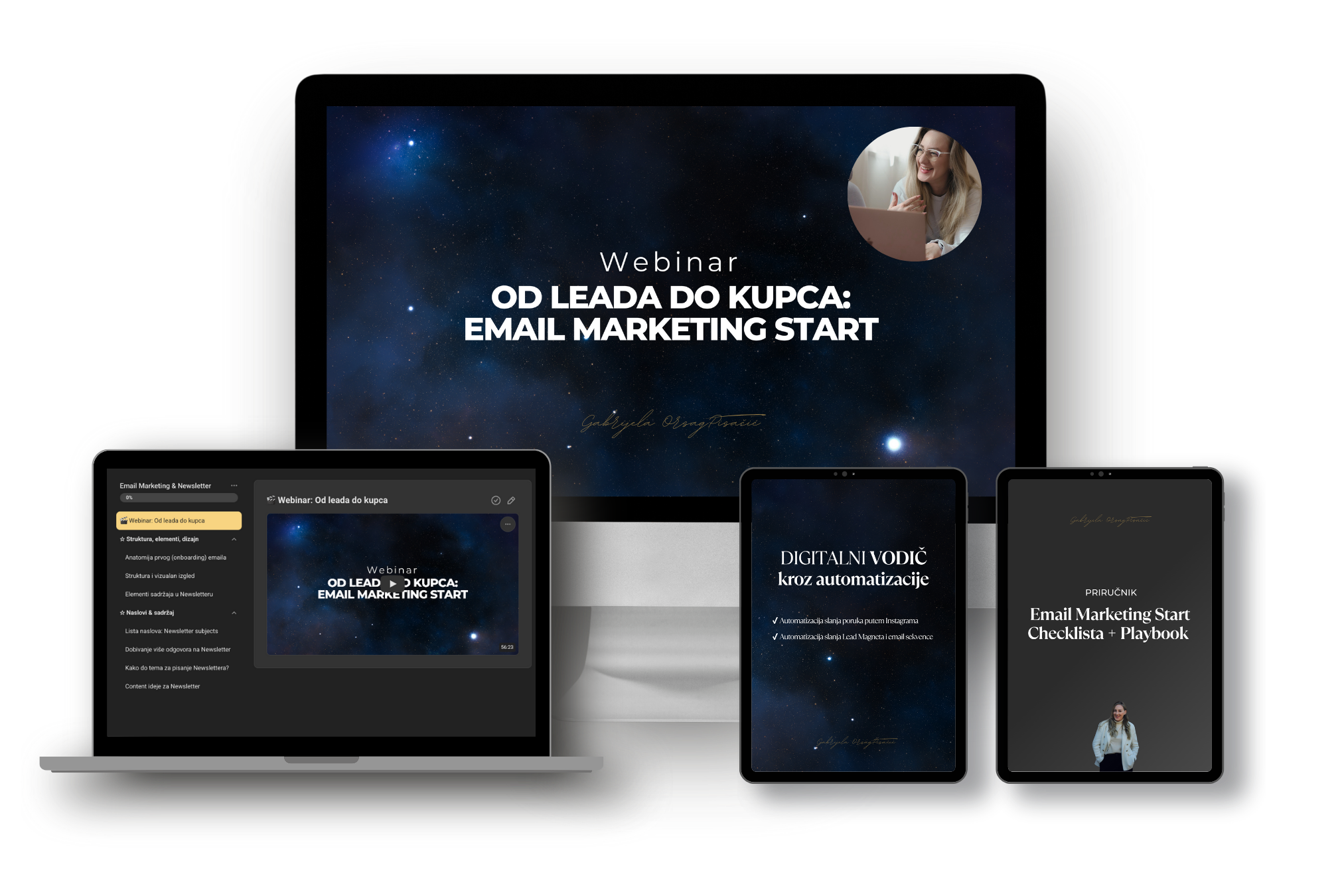 ✓ Newsletter 101 lekcije (anatomija onboarding emaila, elementi, struktura, ideje za teme, lista naslova, savjeti za više odgovora)